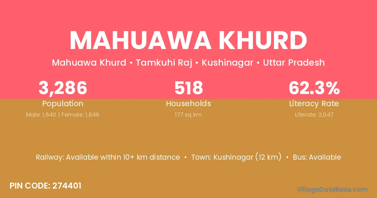 Mahuawa Khurd village has a total population of 1,506 people, of which 789 are males and 717 are females.
