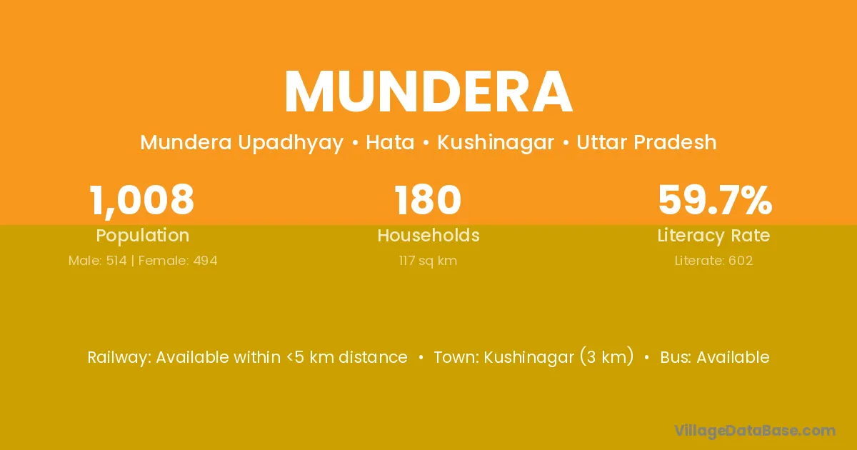 Kushinagar (3 km) is the nearest town to Mundera village for major economic activities and is located approximately 3 km away.