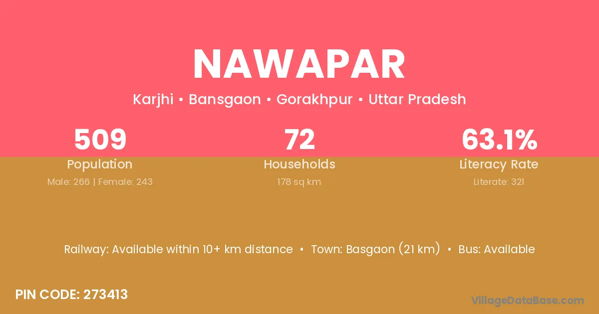Nawapar village has a total population of 2,285 people, of which 1,232 are males and 1,053 are females.