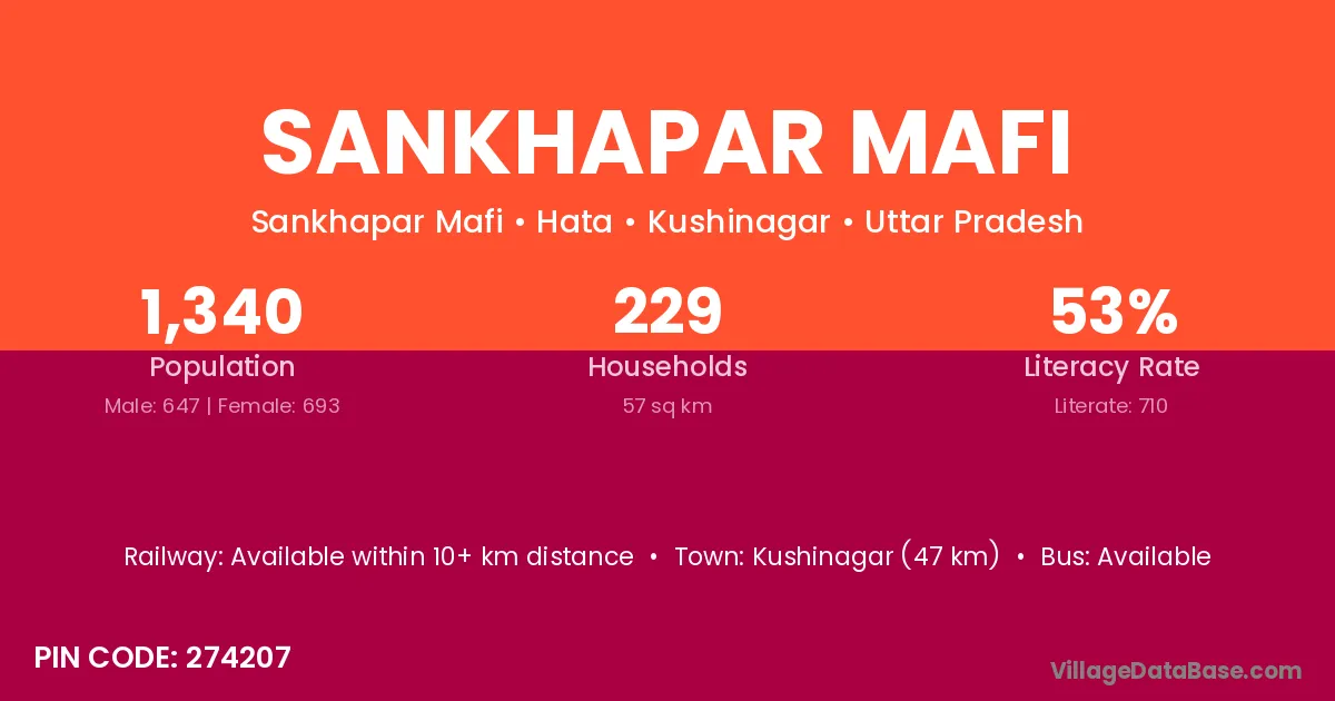 Kushinagar (47 km) is the nearest town to Sankhapar Mafi village for major economic activities and is located approximately 47 km away.