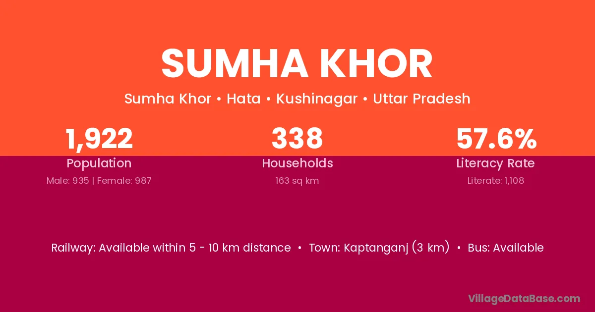 Kaptanganj (3 km) is the nearest town to Sumha Khor village for major economic activities and is located approximately 3 km away.