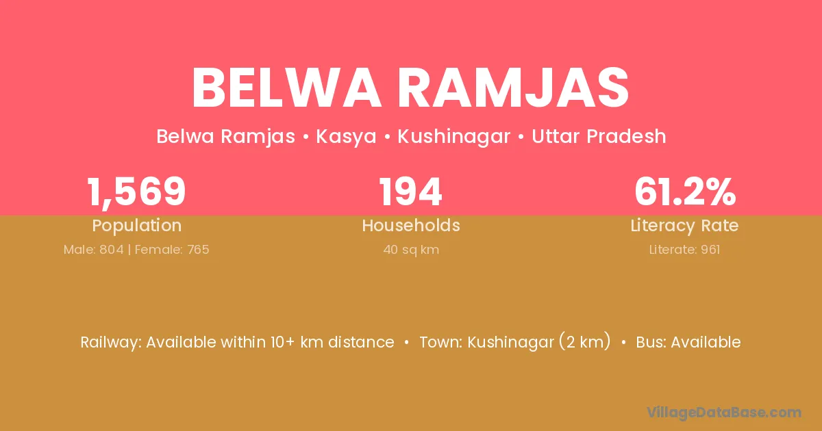 Kushinagar (2 km) is the nearest town to Belwa Ramjas village for major economic activities and is located approximately 2 km away.