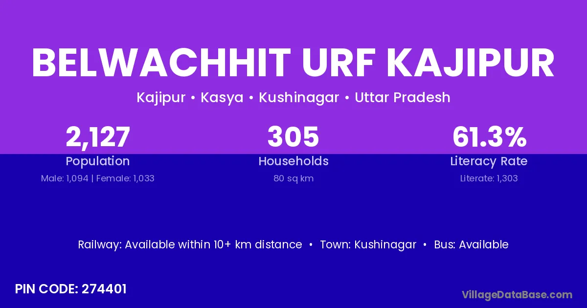 Belwachhit Urf Kajipur village has a total population of 2,127 people, of which 1,094 are males and 1,033 are females.