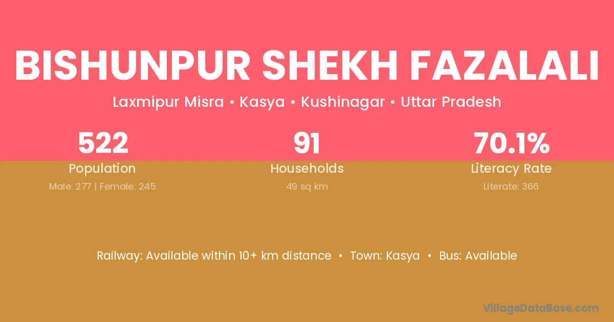 Bishunpur Shekh Fazalali village has a total population of 522 people, of which 277 are males and 245 are females.