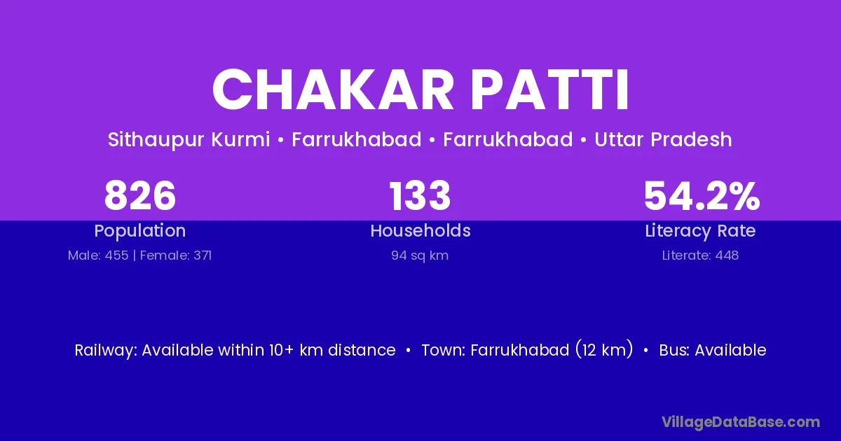 Kushinagar (7 km) is the nearest town to Chakar Patti village for major economic activities and is located approximately 7 km away.