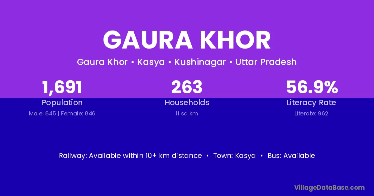 Gaura Khor village has a total population of 1,691 people, of which 845 are males and 846 are females.