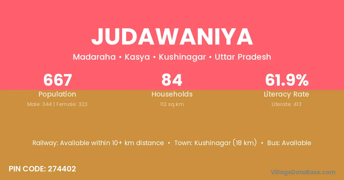 Kushinagar (18 km) is the nearest town to Judawaniya village for major economic activities and is located approximately 18 km away.
