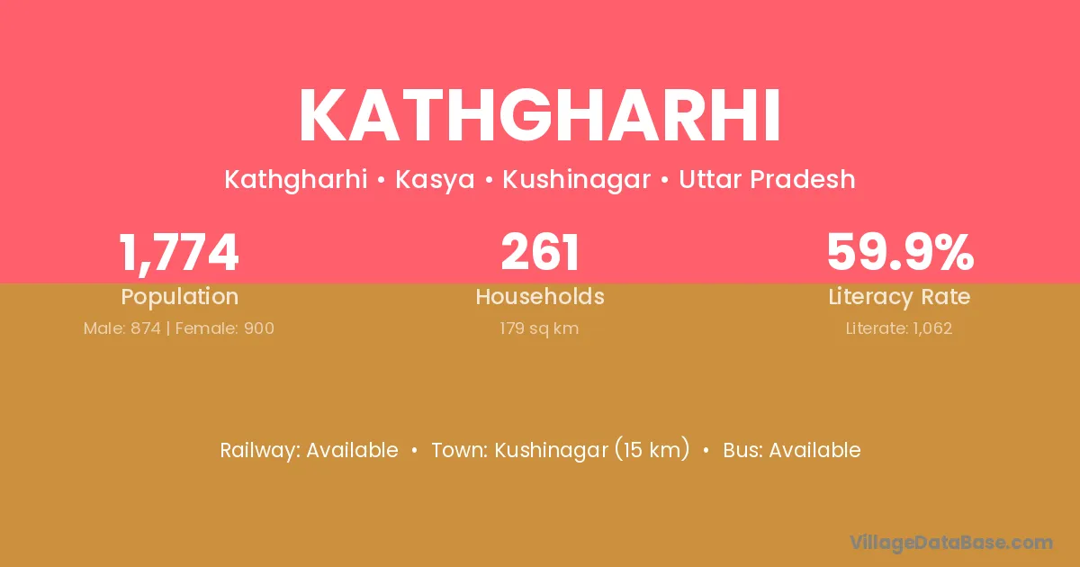 Kushinagar (15 km) is the nearest town to Kathgharhi village for major economic activities and is located approximately 15 km away.