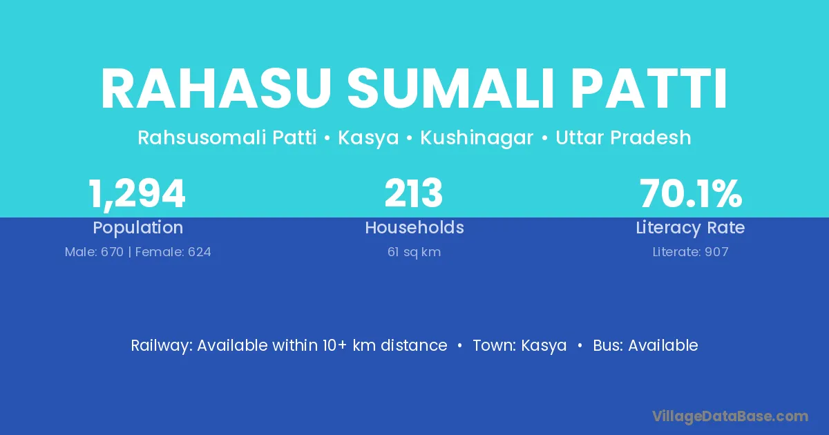 Rahasu Sumali Patti village has a total population of 1,294 people, of which 670 are males and 624 are females.