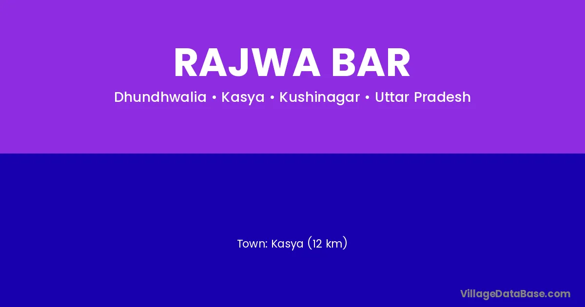 Kasya (12 km) is the nearest town to Rajwa Bar village for major economic activities and is located approximately 12 km away.