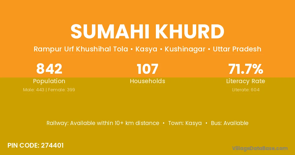Sumahi Khurd village has a total population of 842 people, of which 443 are males and 399 are females.