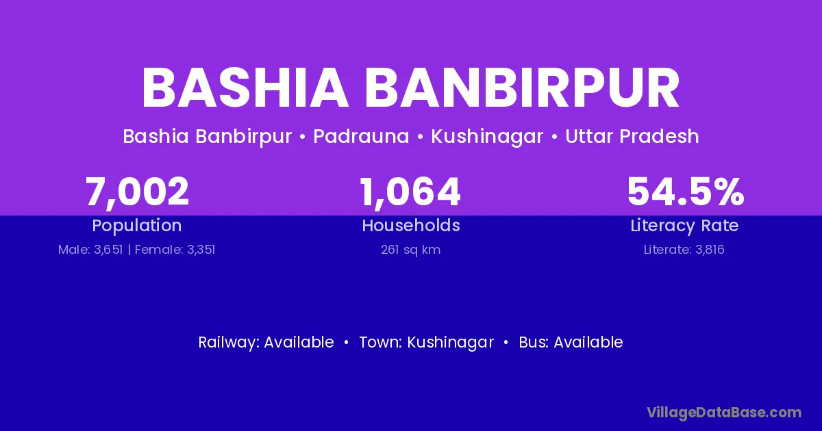Kushinagar is the nearest town to Bashia Banbirpur village for major economic activities