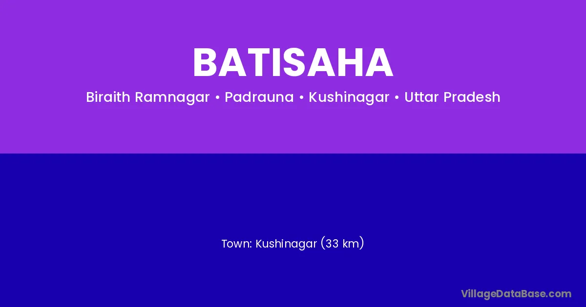 Kushinagar (33 km) is the nearest town to Batisaha village for major economic activities and is located approximately 33 km away.