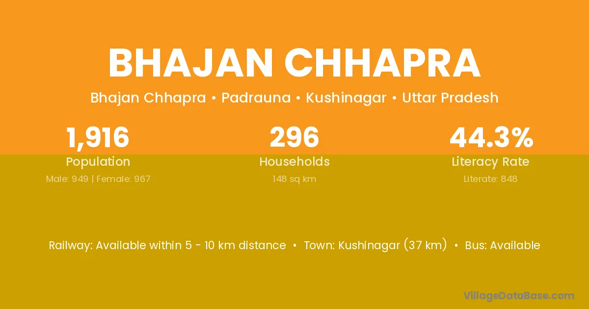 Kushinagar (37 km) is the nearest town to Bhajan Chhapra village for major economic activities and is located approximately 37 km away.