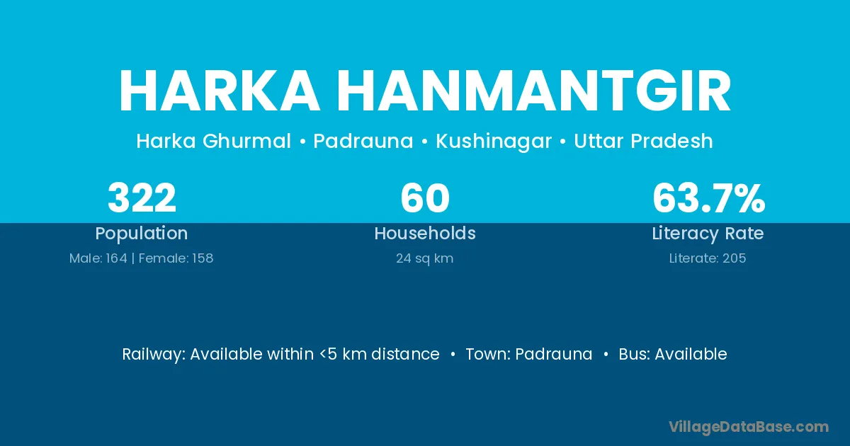 Harka Hanmantgir village has a total population of 322 people, of which 164 are males and 158 are females.