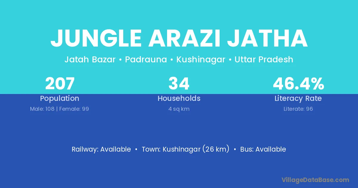 Jungle Arazi Jatha village has a total population of 207 people, of which 108 are males and 99 are females.