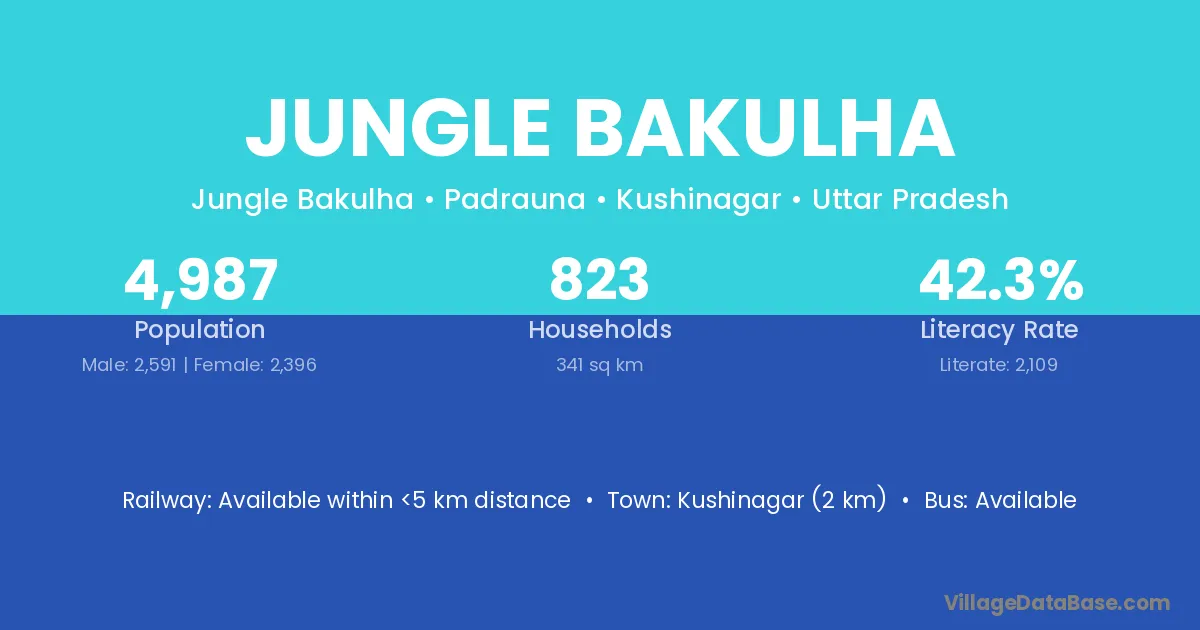 Jungle Bakulha village has a total population of 4,987 people, of which 2,591 are males and 2,396 are females.