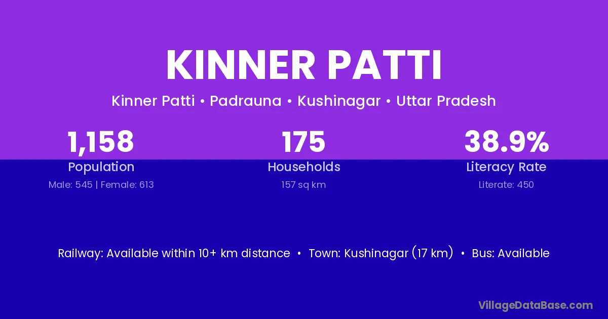 Kushinagar (17 km) is the nearest town to Kinner Patti village for major economic activities and is located approximately 17 km away.