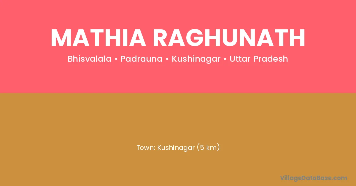 Kushinagar (5 km) is the nearest town to Mathia Raghunath village for major economic activities and is located approximately 5 km away.