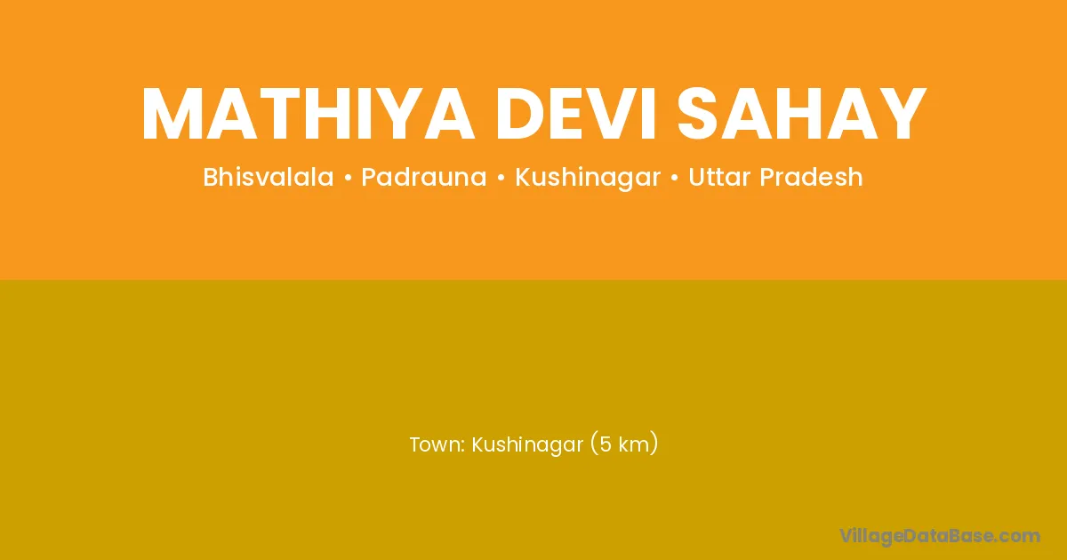 Kushinagar (5 km) is the nearest town to Mathiya Devi Sahay village for major economic activities and is located approximately 5 km away.