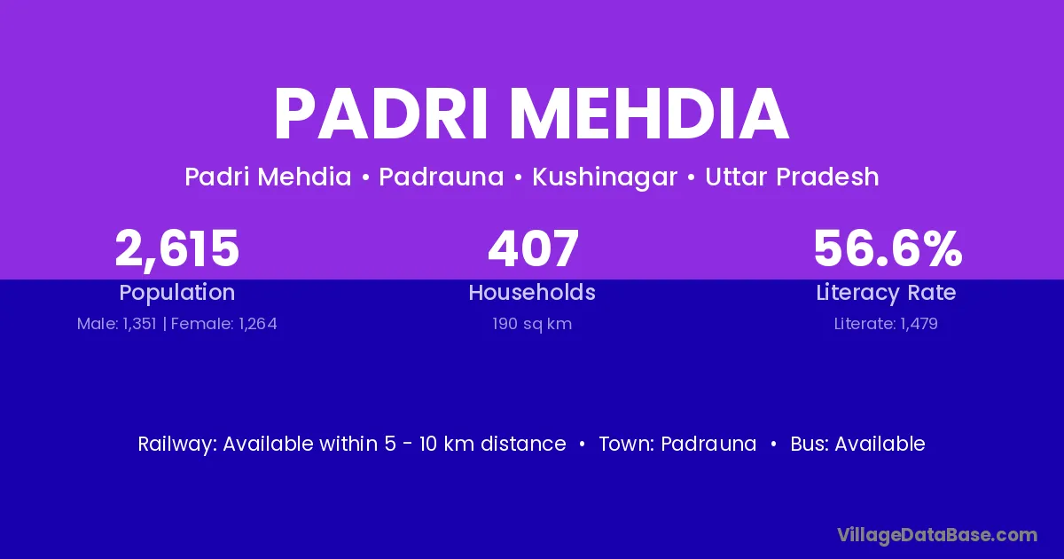 Padrauna is the nearest town to Padri Mehdia village for major economic activities