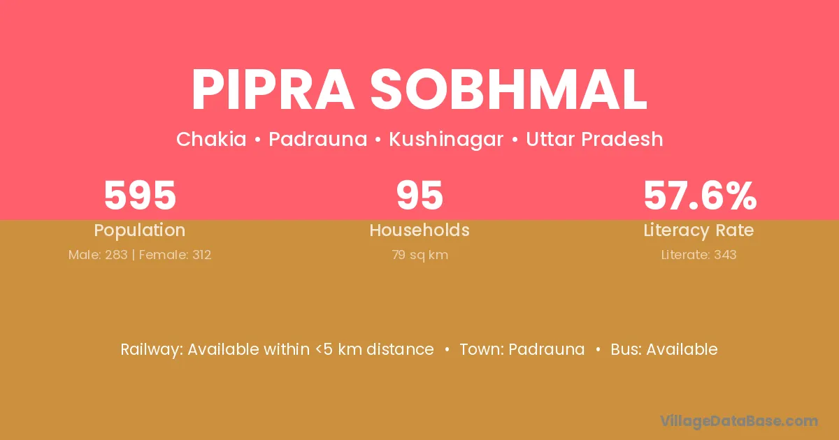 Pipra Sobhmal village has a total population of 595 people, of which 283 are males and 312 are females.