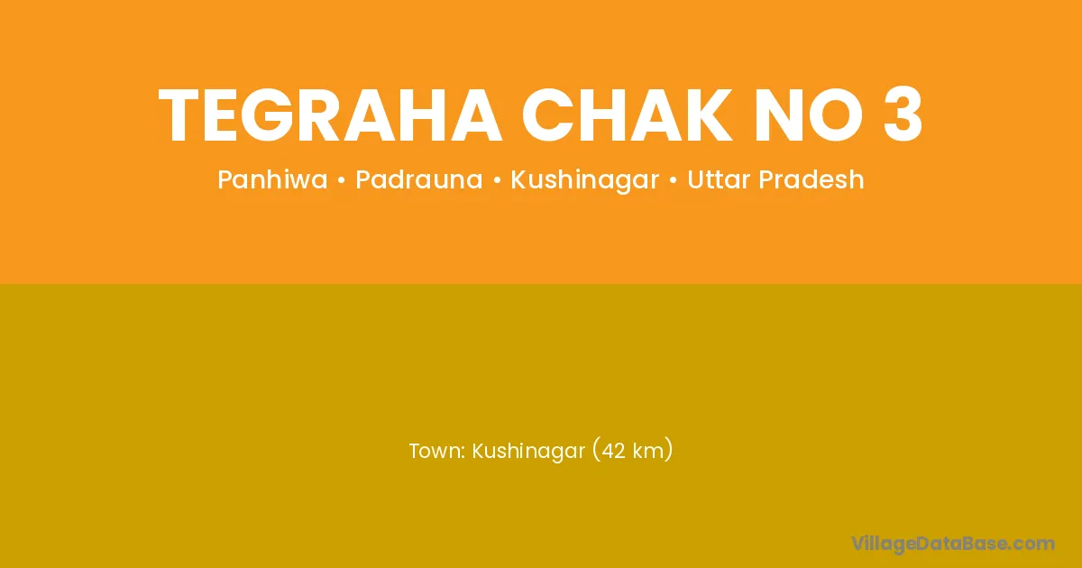 Kushinagar (42 km) is the nearest town to Tegraha Chak No 3 village for major economic activities and is located approximately 42 km away.
