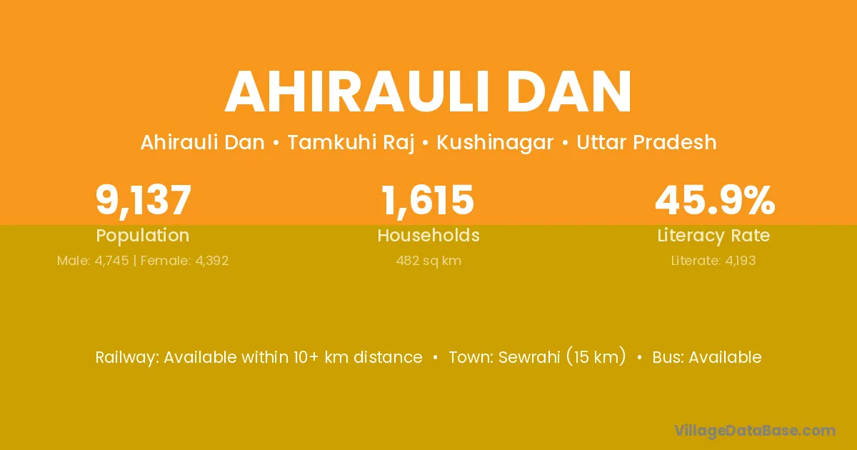 Ahirauli Dan village has a total population of 9,137 people, of which 4,745 are males and 4,392 are females.