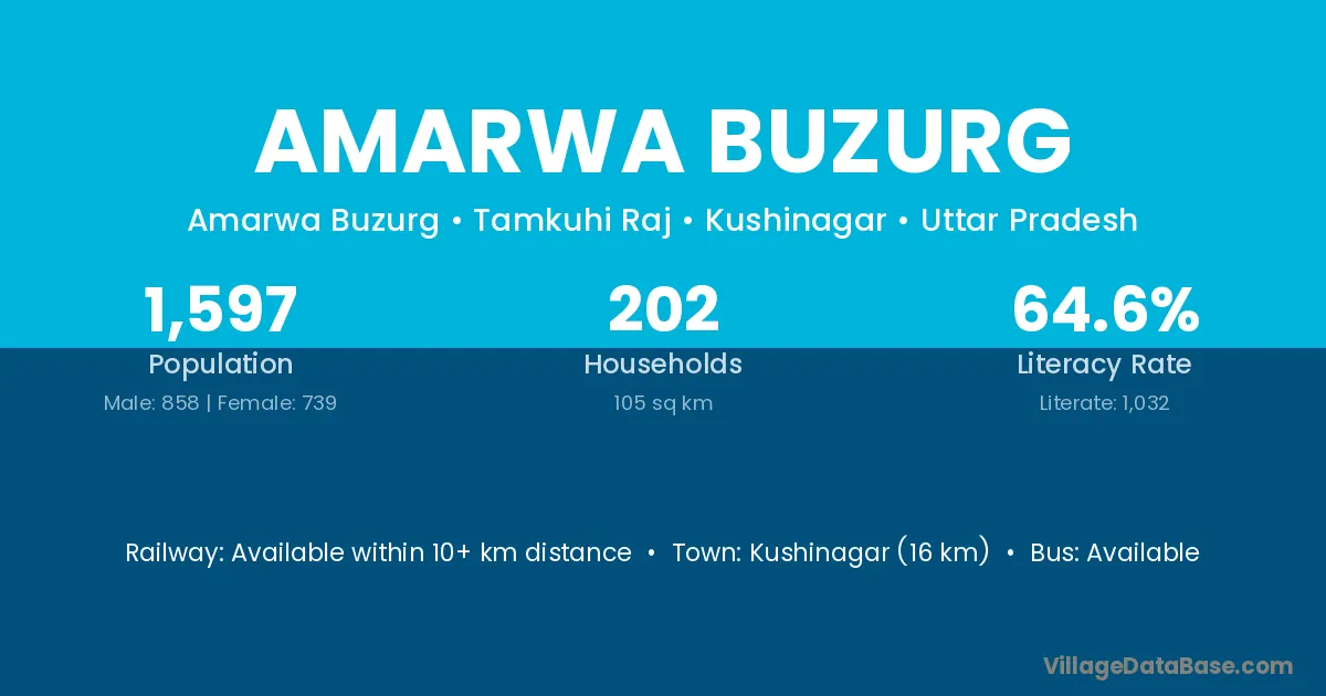Kushinagar (16 km) is the nearest town to Amarwa Buzurg village for major economic activities and is located approximately 16 km away.