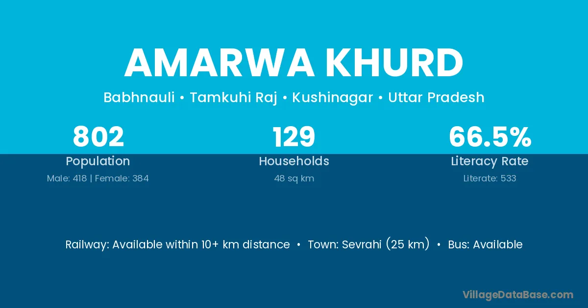 Amarwa Khurd village has a total population of 802 people, of which 418 are males and 384 are females.