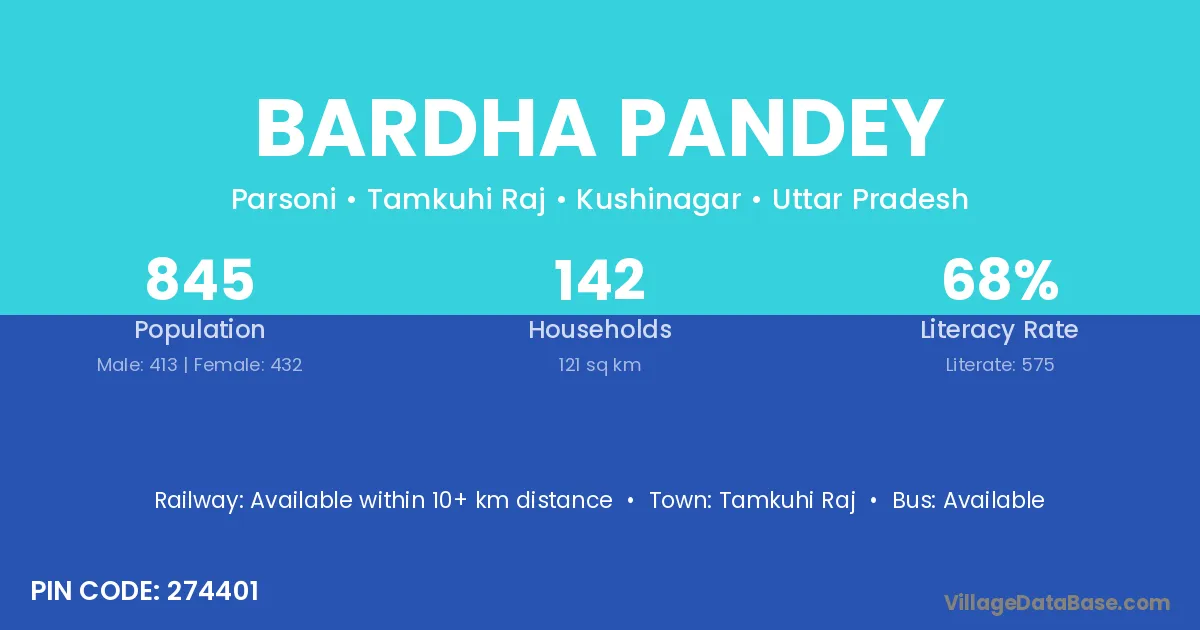 Bardha Pandey village has a total population of 845 people, of which 413 are males and 432 are females.