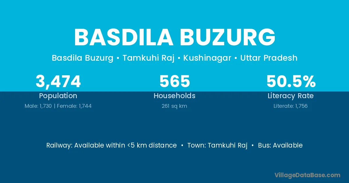 Tamkuhi Raj is the nearest town to Basdila Buzurg village for major economic activities