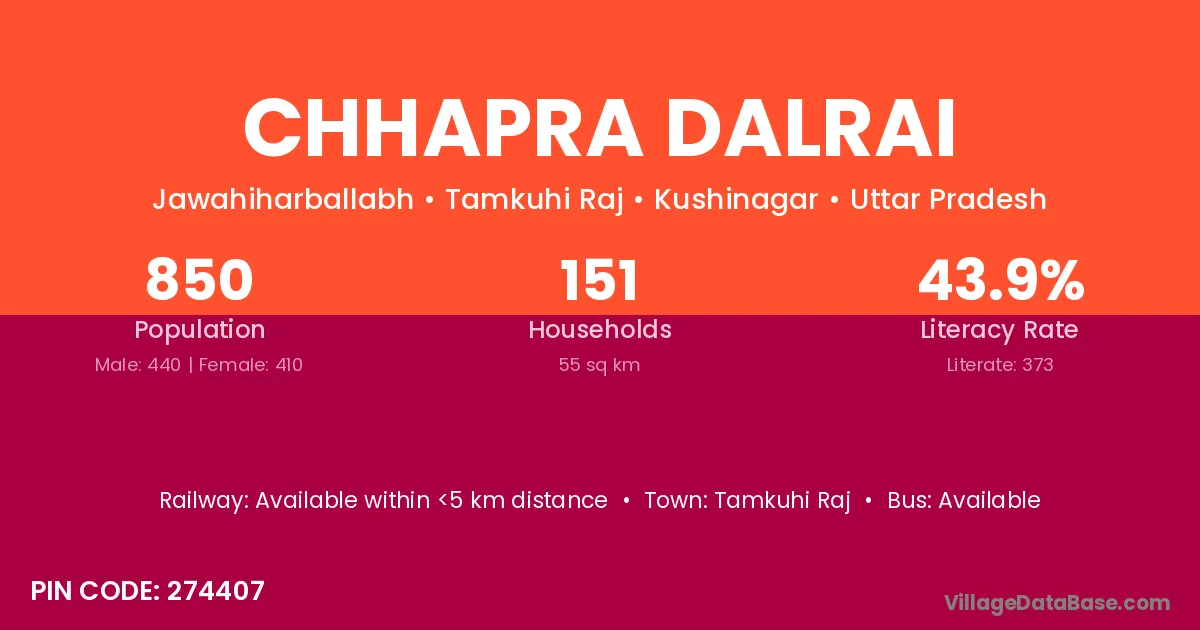 Tamkuhi Raj is the nearest town to Chhapra Dalrai village for major economic activities