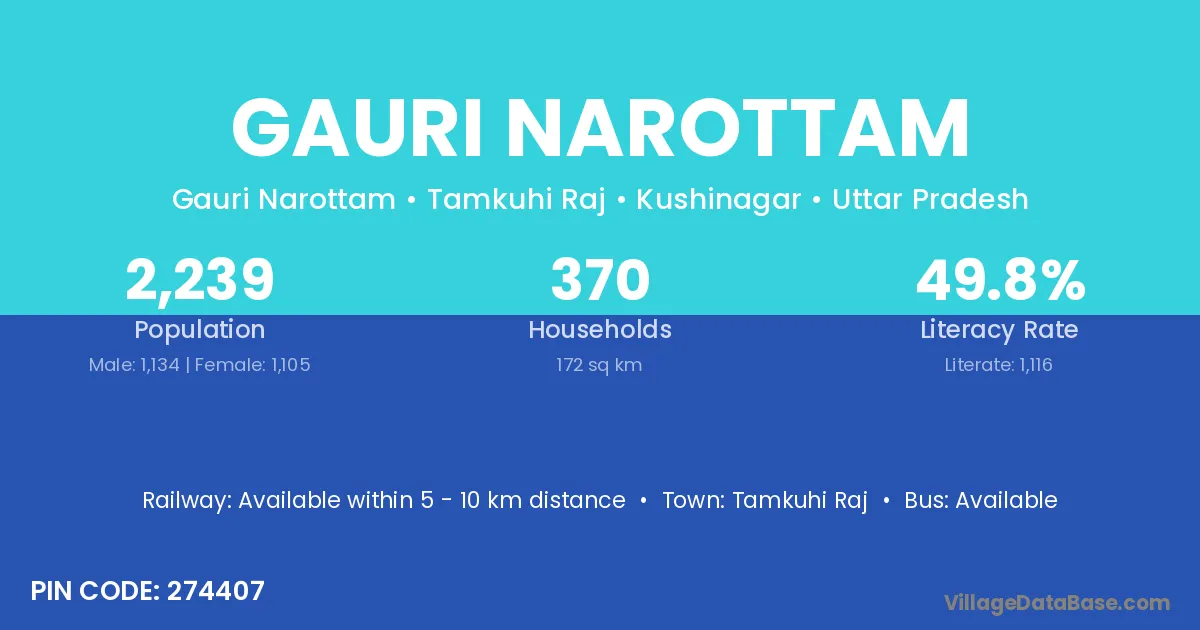 Tamkuhi Raj is the nearest town to Gauri Narottam village for major economic activities