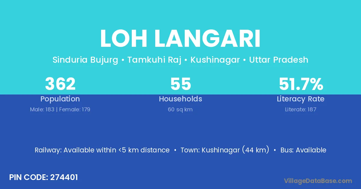 Kushinagar (44 km) is the nearest town to Loh Langari village for major economic activities and is located approximately 44 km away.