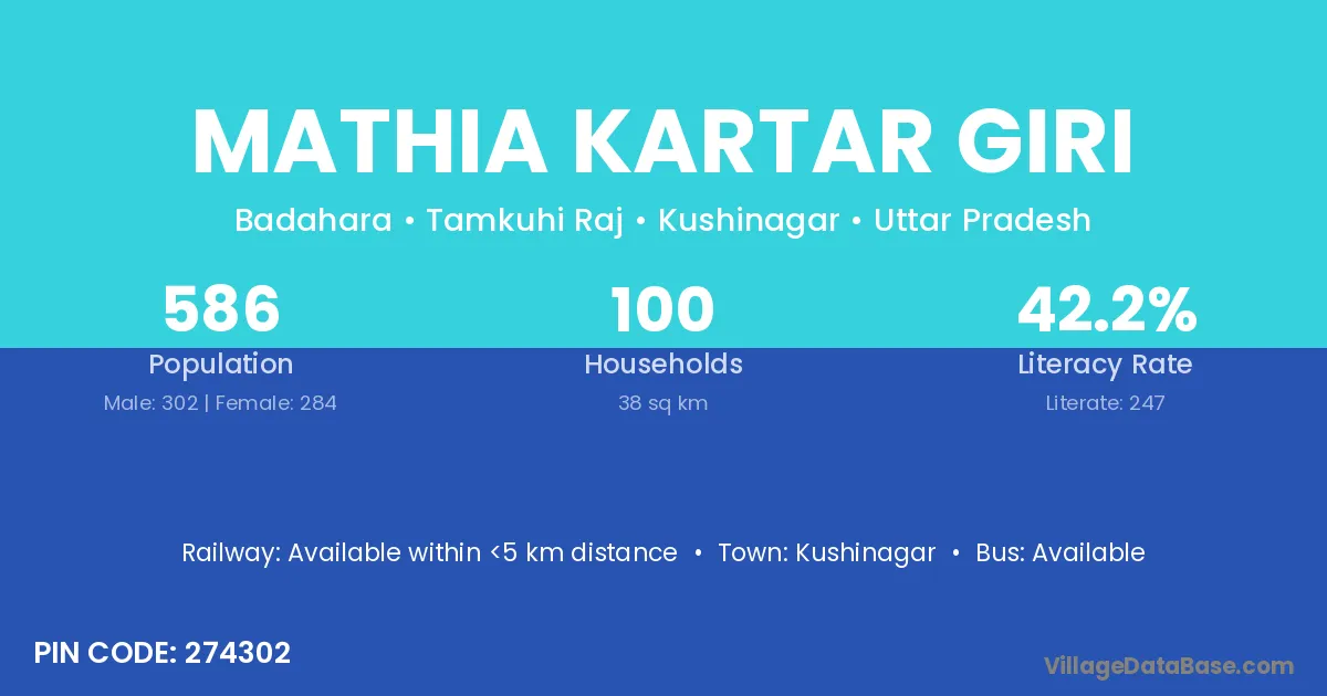 Kushinagar is the nearest town to Mathia Kartar Giri village for major economic activities