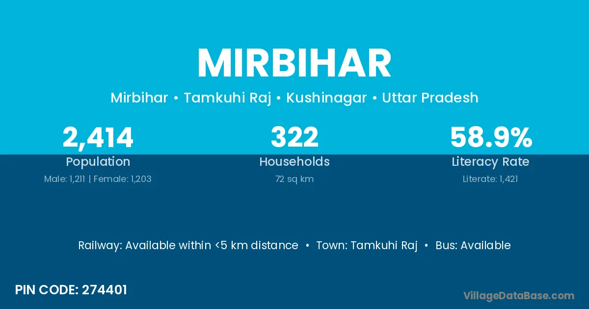 Tamkuhi Raj is the nearest town to Mirbihar village for major economic activities