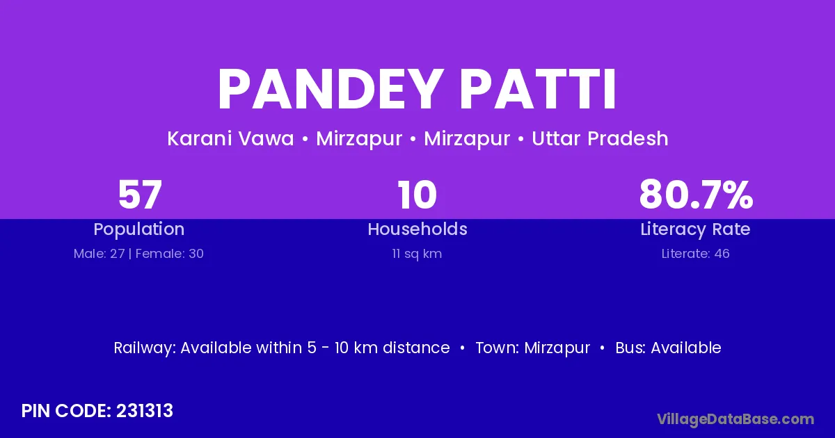 The population of Pandey Patti village is distributed between literate and illiterate residents as follows:
