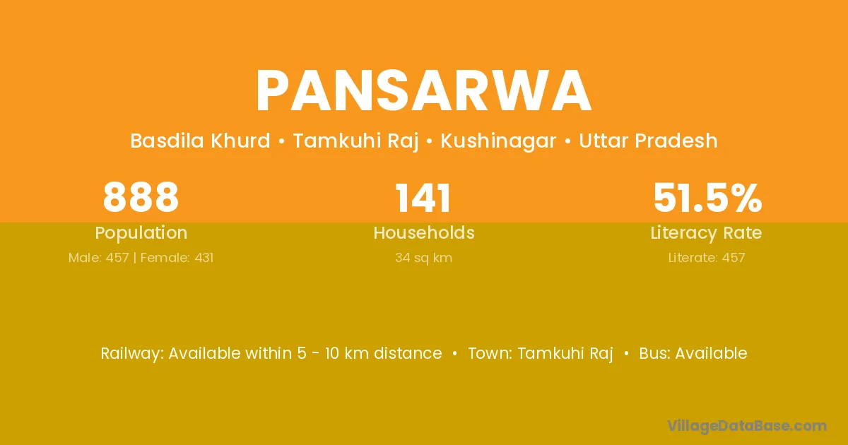 Tamkuhi Raj is the nearest town to Pansarwa village for major economic activities