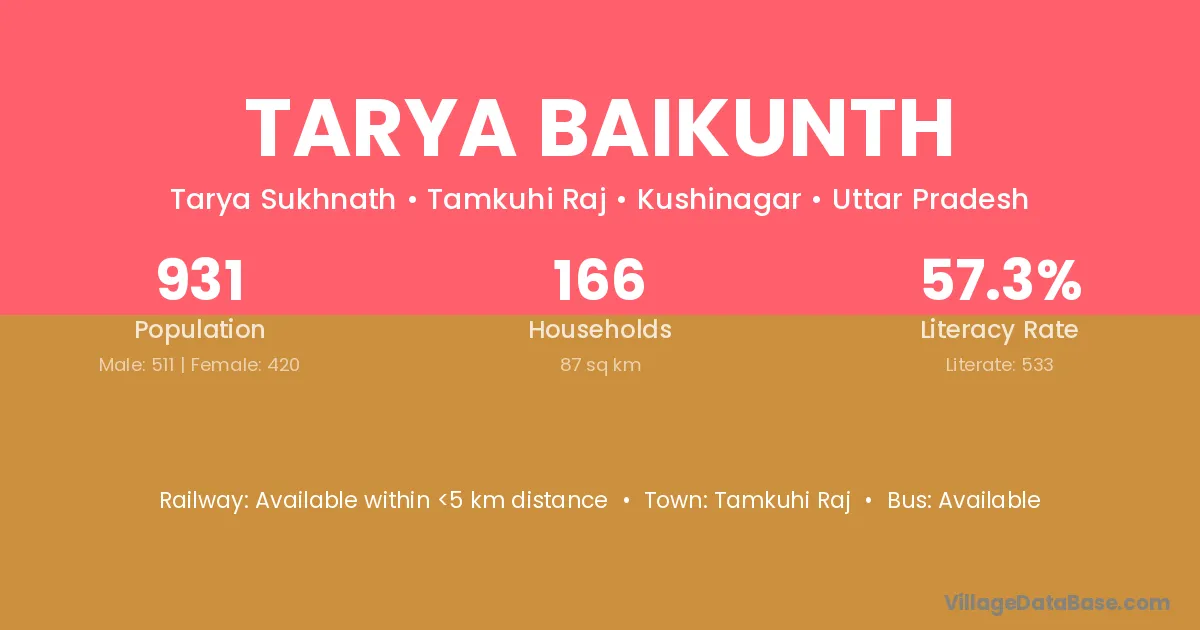 Tarya Baikunth village has a total population of 931 people, of which 511 are males and 420 are females.