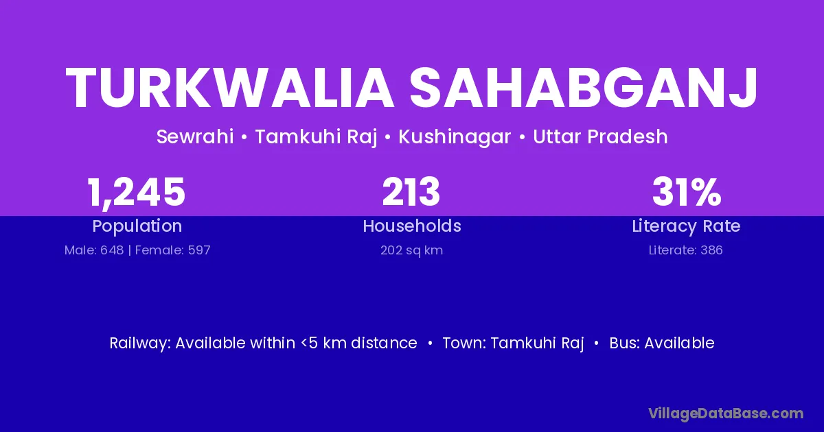 Tamkuhi Raj is the nearest town to Turkwalia Sahabganj village for major economic activities