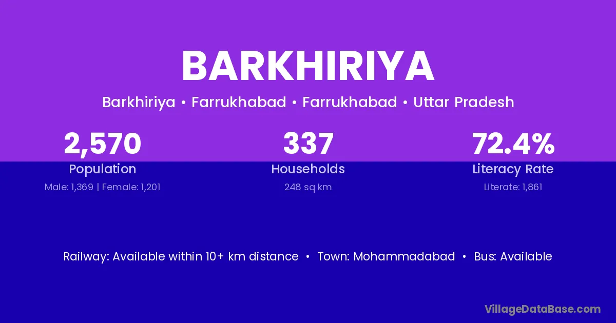 Lalitpur (15 km) is the nearest town to Barkhiriya village for major economic activities and is located approximately 15 km away.