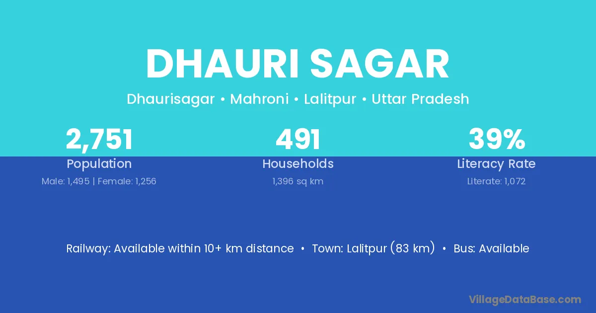 Lalitpur (83 km) is the nearest town to Dhauri Sagar village for major economic activities and is located approximately 83 km away.