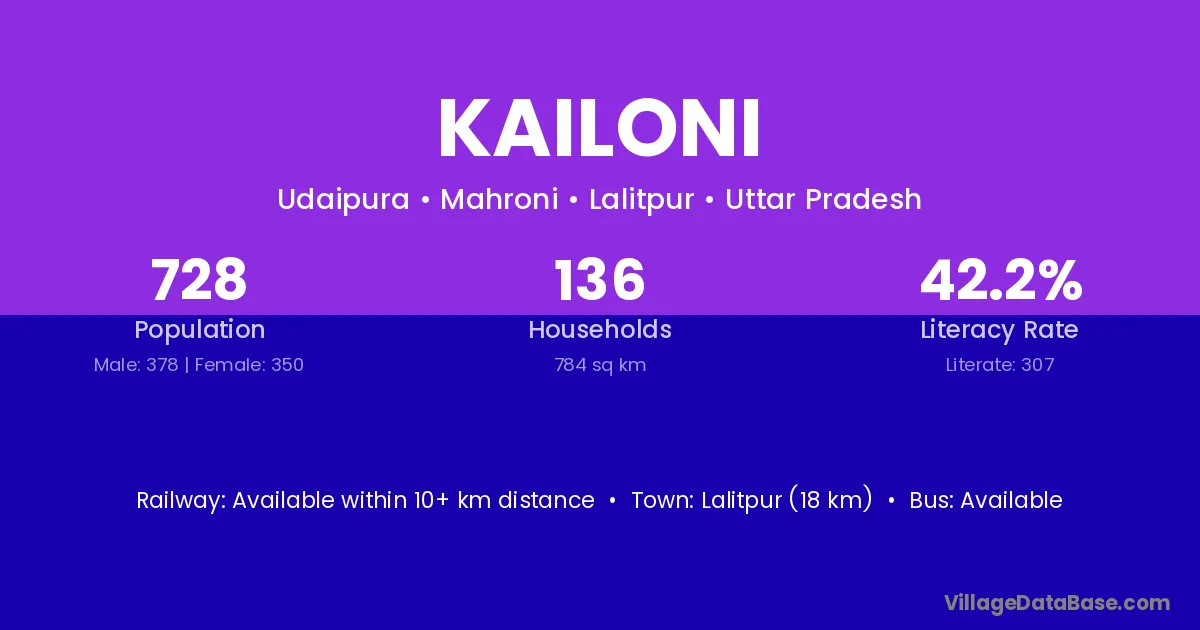 Lalitpur (18 km) is the nearest town to Kailoni village for major economic activities and is located approximately 18 km away.