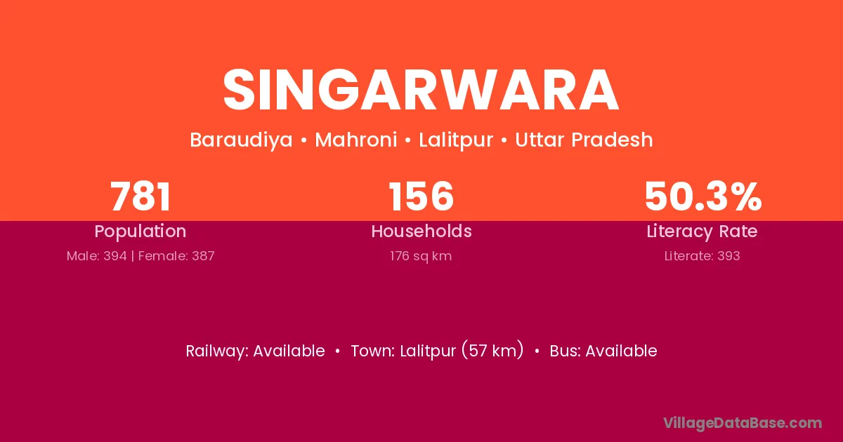 Singarwara village has a total population of 781 people, of which 394 are males and 387 are females.