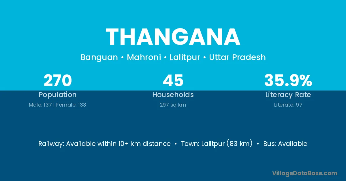 Thangana village has a total population of 270 people, of which 137 are males and 133 are females.