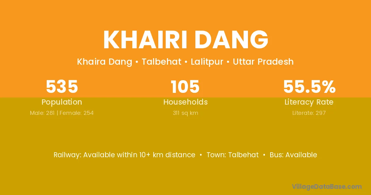Khairi Dang village has a total population of 535 people, of which 281 are males and 254 are females.