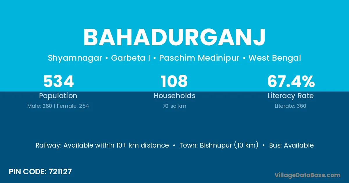 The literacy rate of Bahadurganj village is 63.02%. Male literacy stands at 70.00% and female literacy at 55.43%.