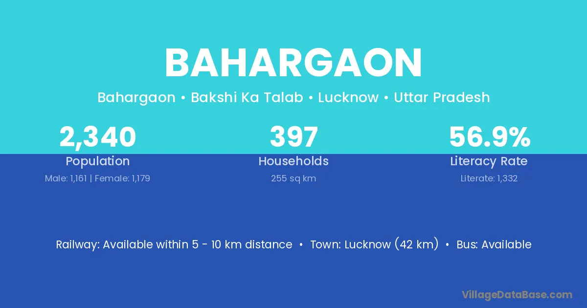 Lucknow (42 km) is the nearest town to Bahargaon village for major economic activities and is located approximately 42 km away.