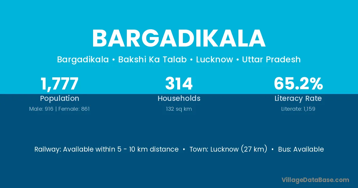 Lucknow (27 km) is the nearest town to Bargadikala village for major economic activities and is located approximately 27 km away.